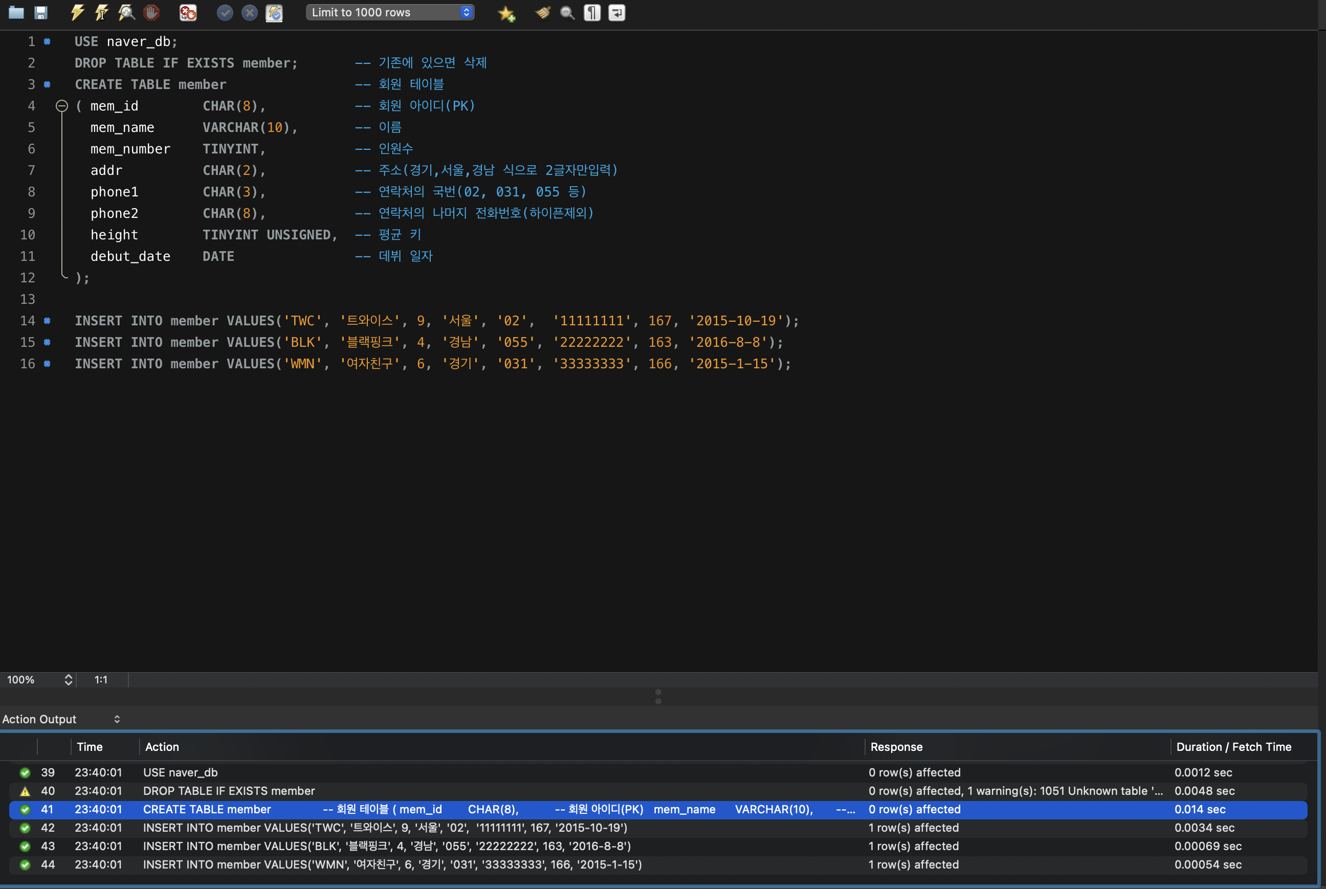buy 테이블과 member 테이블의 JOIN으로 출력한 정보