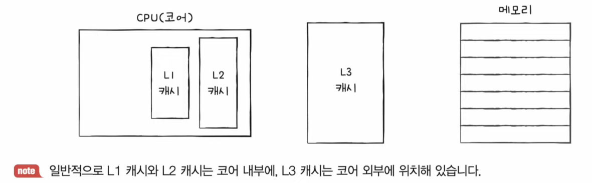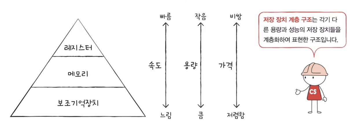 - CPU와 가까운 저장 장치는 빠르고, 멀리 있는 저장 장치는 느리다.
