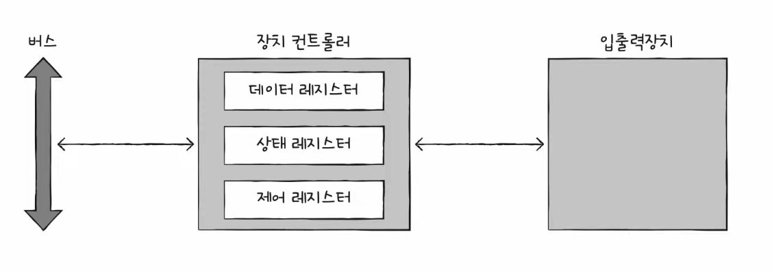 - 위와 같은 어려움을 해결하기 위해 입출력장치는 장치 컨트롤러를 통해 컴퓨터와 연결된다.
