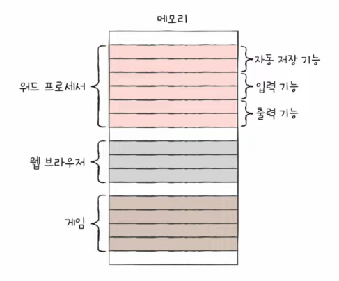 - 새롭게 실행되는 프로그램은 새롭게 메모리에 적재