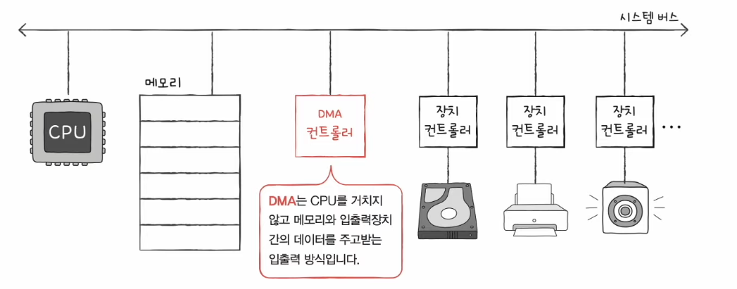 - 입출력장치와 메모리가 CPU를 거치지 않고도 상호작용할 수 있는 입출력 방식