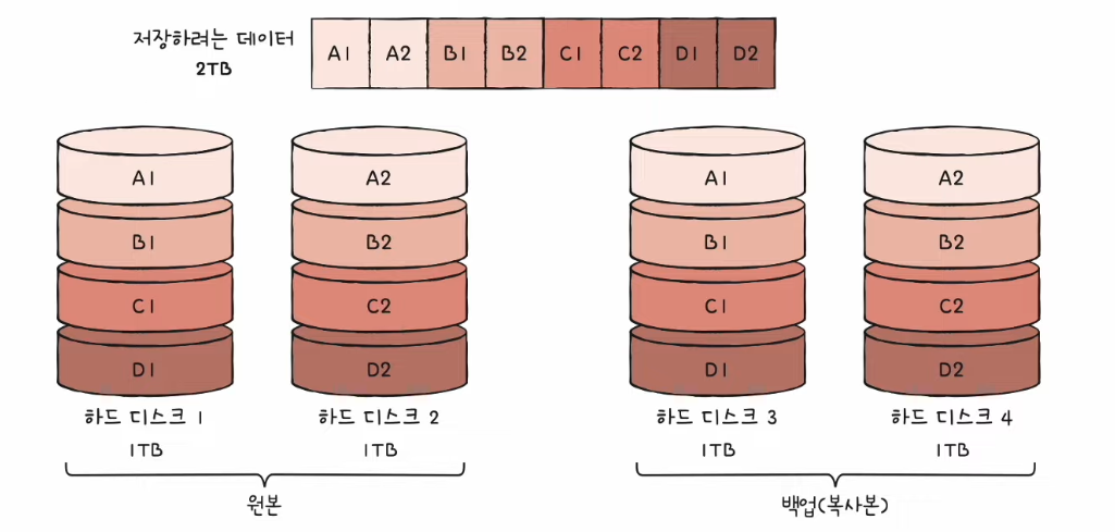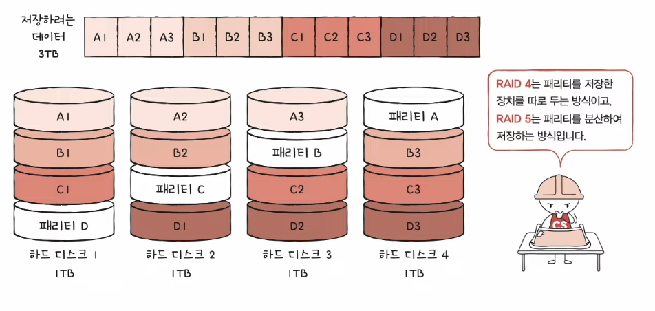 - 두 종류의 패리티 (오류를 검출하고 복구할 수 있는 수단)을 저장한다.